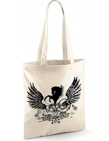 Sac shopping, tote-bags écru - Cheval stylisé ailé