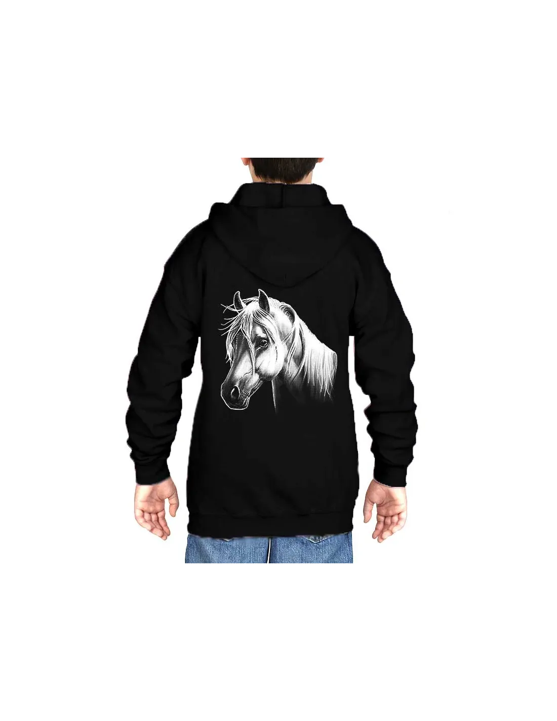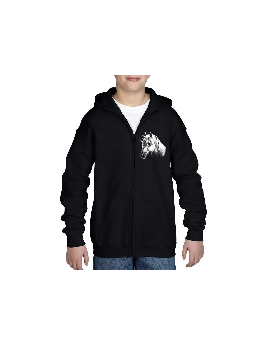 Offrez à votre enfant une touche de style équestre avec cette veste sweat zippée ornée d'un poney, disponible en bordeaux, bleu marine et noir.