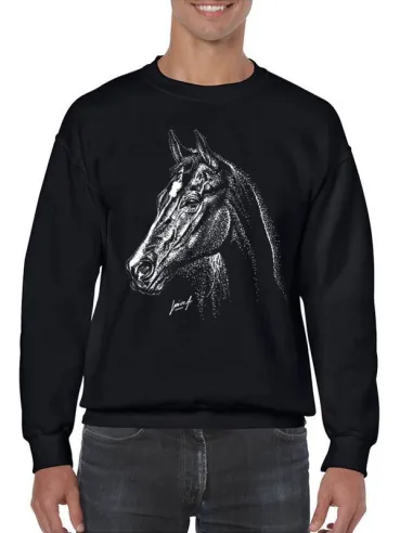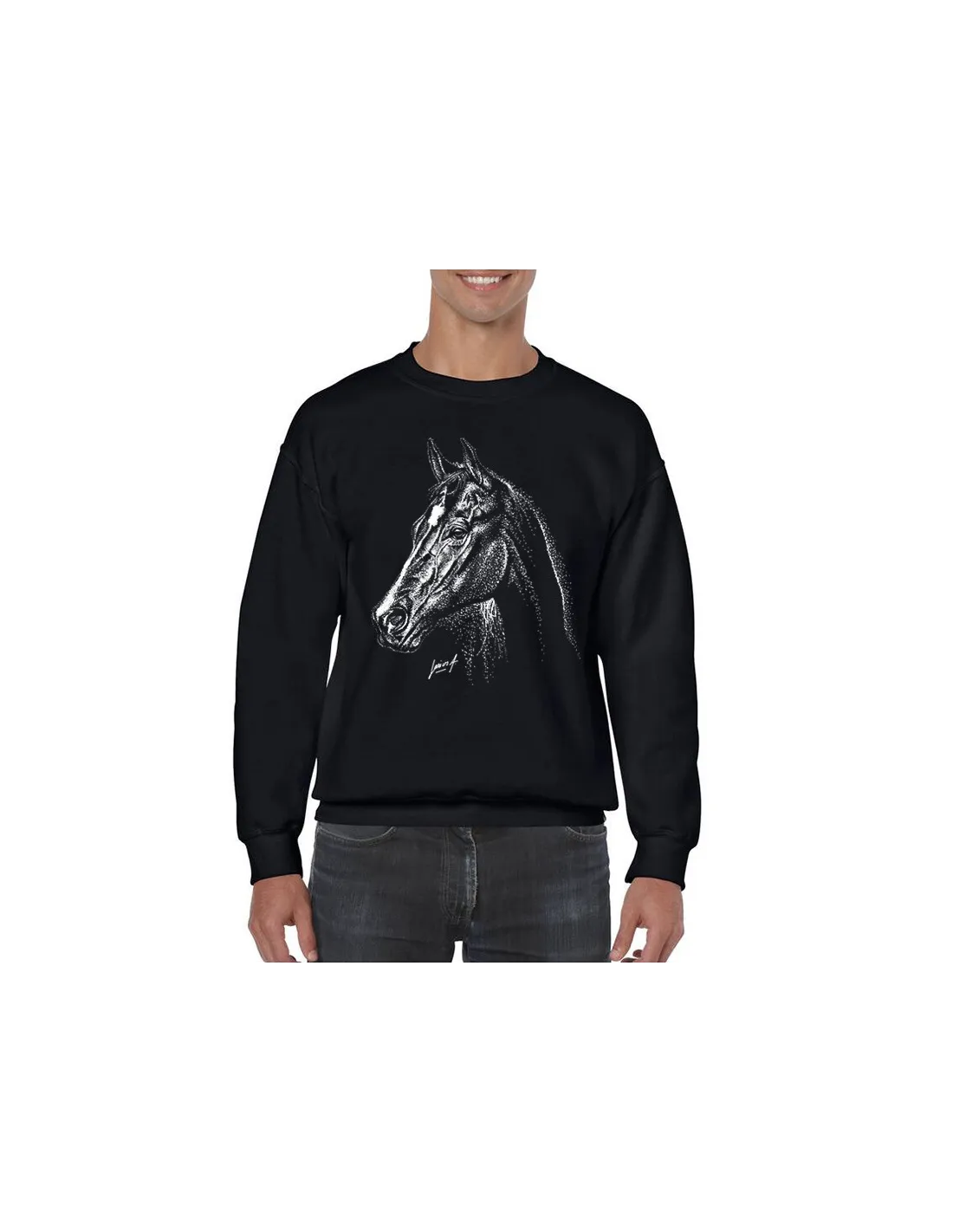 Sweat-shirt décontracté 50% coton, 50% polyester, col rond sans capuche. Motif Portrait d'un cheval pensé en France : style original, confort, durable, cadeau idéal.