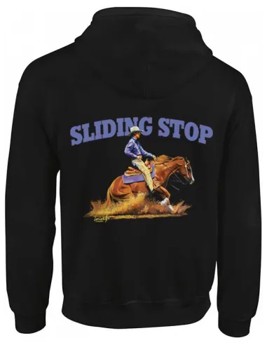 Alliez style western et confort au quotidien, en promenade équestre comme en ville. Ce sweat à capuche avec zip est pensé pour la cavalière active : ample liberté de mouvement, chaleur équilibrée et détails pratiques pour une journée bien rythmée. Le motif Sliding Stop apporte une touche d’originalité sans compromettre la sobriété et la modernité du look. Un choix fiable pour se faire plaisir et faire plaisir autour de soi.