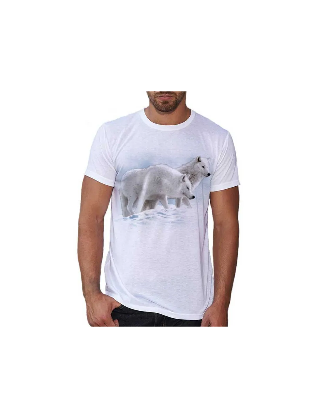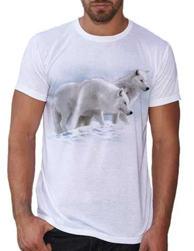 T-shirt blanc homme  avec loups blancs. 100% polyester.