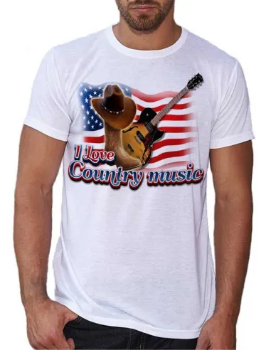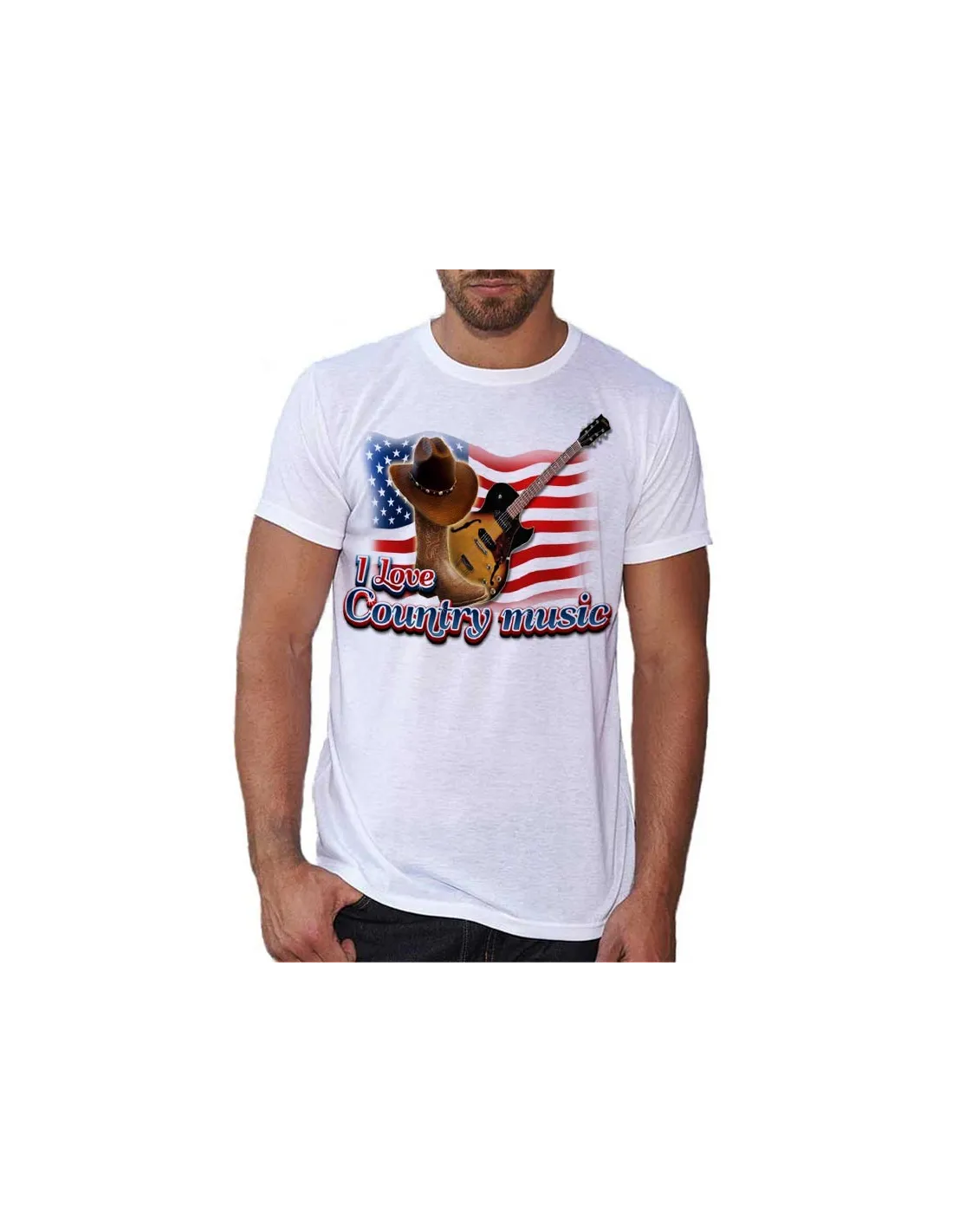 T-shirt homme motif "I love country". Avec drapeau Américain bottes et guitare