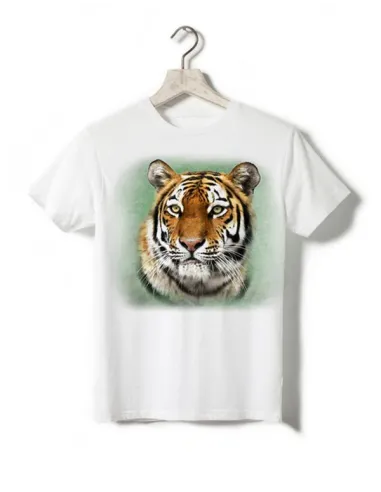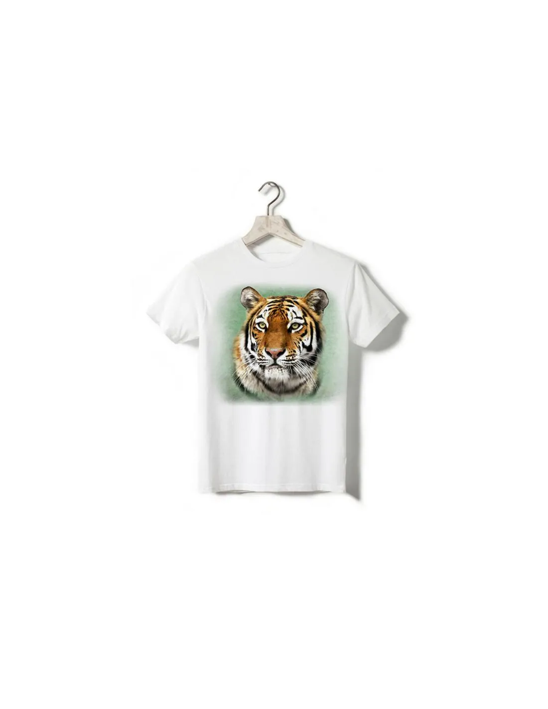 Les enfants amoureux des animaux et de la nature vont adorer porter ce t-shirt blanc aux manches courtes avec un imprimé du roi de la jungle : un tigre, le plus grand prédateur de la vie sauvage.