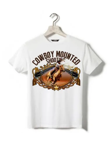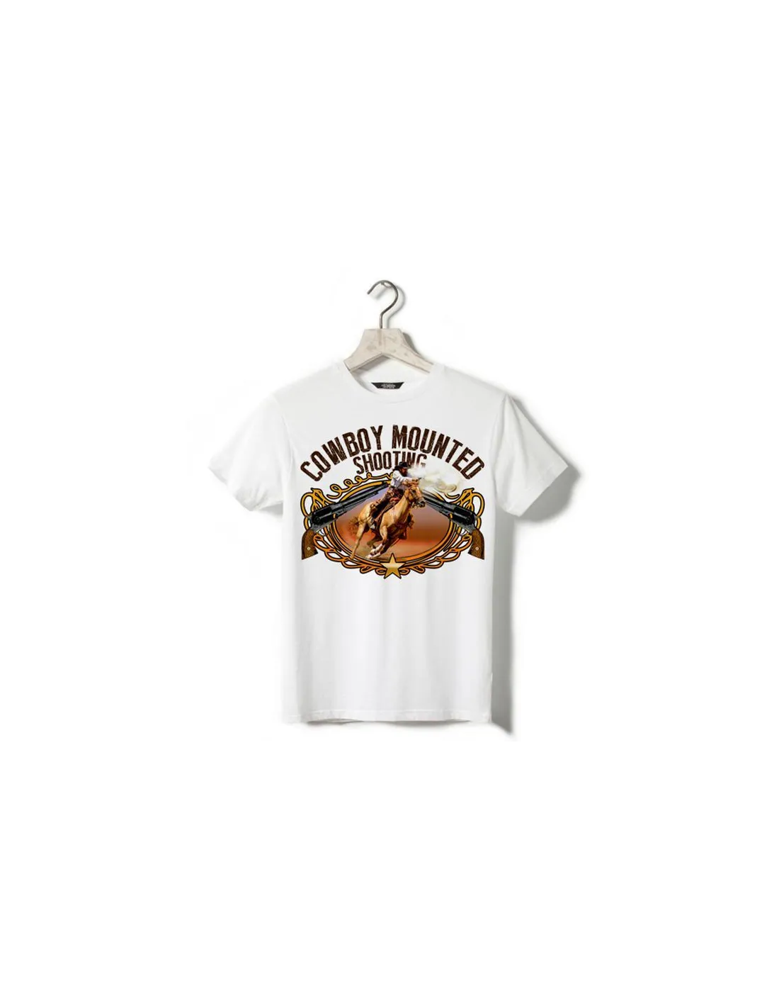T-shirt blanc - Enfant - Cowboy - Tir à cheval
