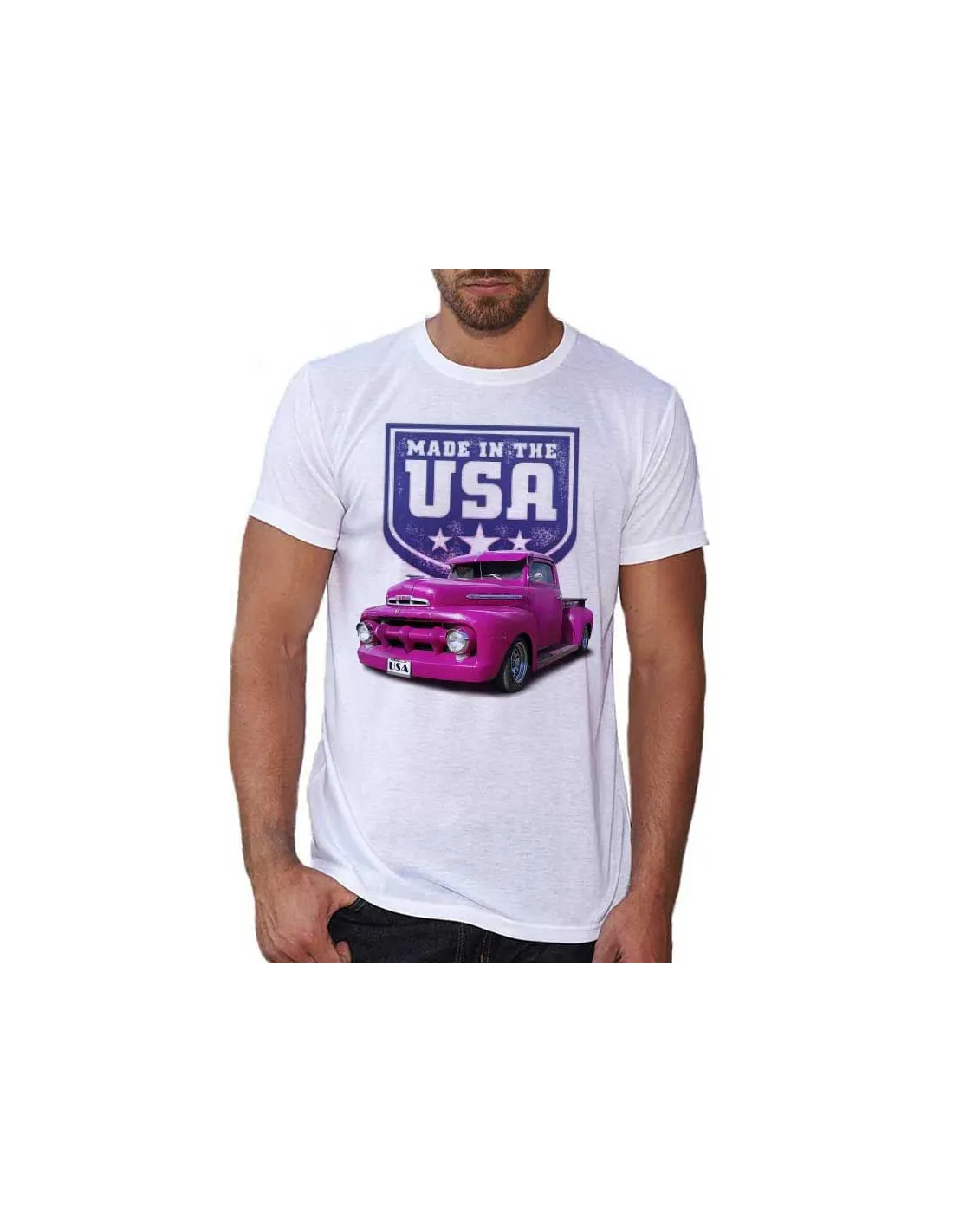 T-shirt blanc Homme – Voiture Ford customisée