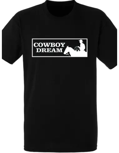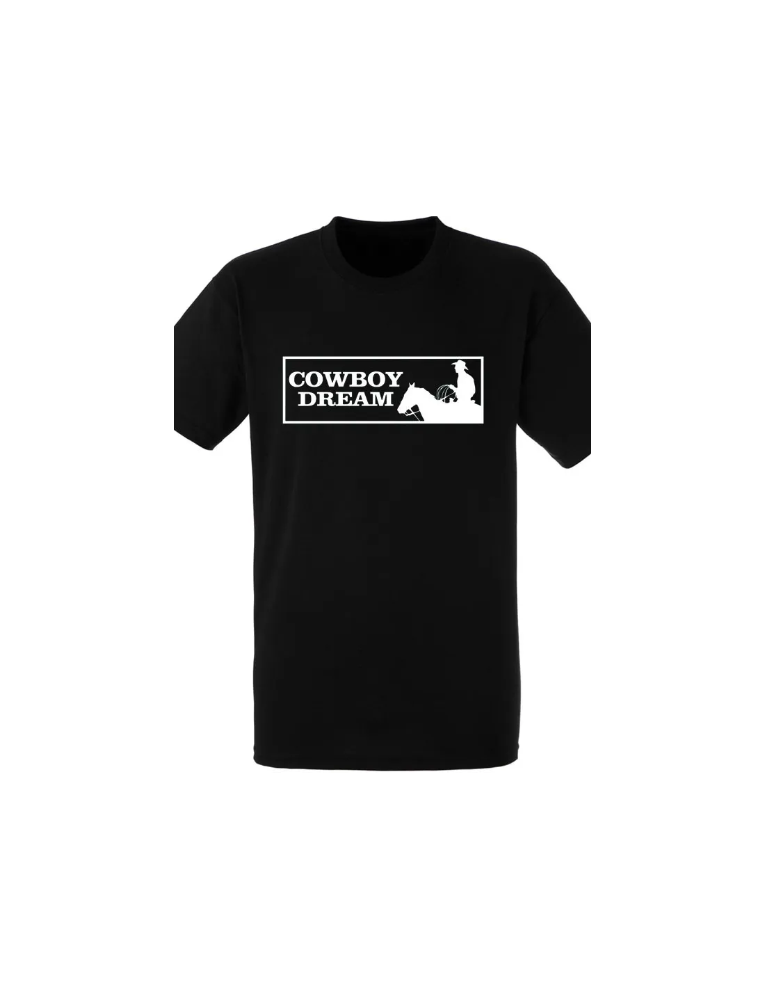 T-shirt noir homme, coton doux, coupe décontractée et col rond. Motif Cowboy Dream, design français : style Western moderne, confort au quotidien. Prêt ?
