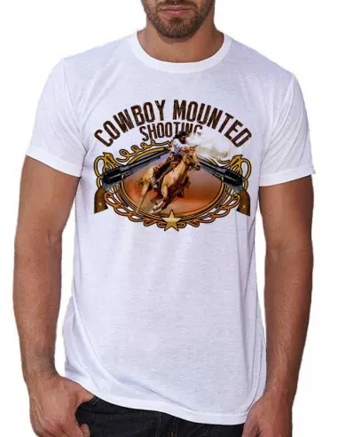 T-shirt blanc — homme - Cowboy - Tir à cheval